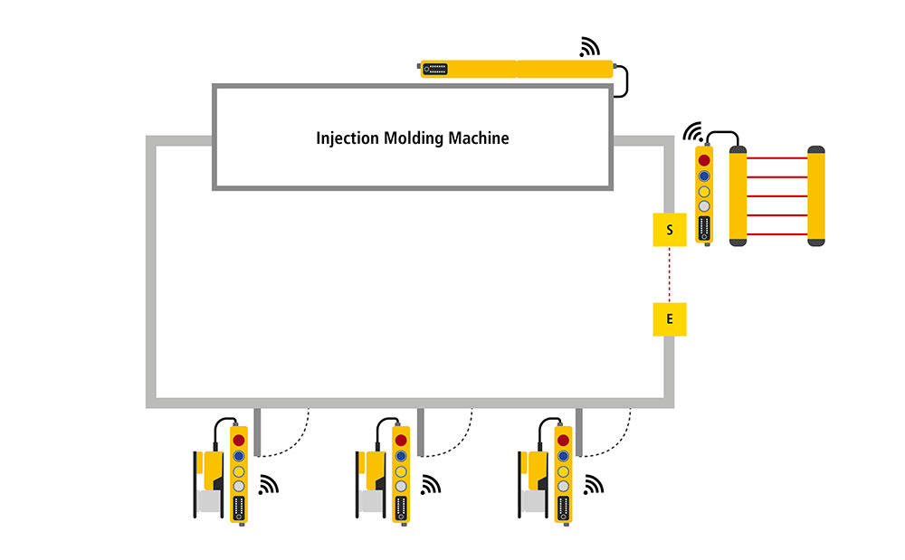Sicurezza wireless con Euromap sulle macchine per stampaggio a iniezione plastica