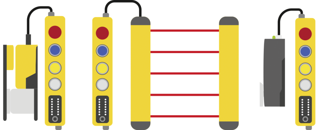 Il Safety Simplifier consente di combinare liberamente diversi dispositivi di sicurezza, come blocchi di sicurezza, griglie luminose con muting e molto altro. Tutti questi dispositivi possono essere collegati tramite connettore M12, rendendo il sistema altamente versatile e adattabile a varie esigenze operative.